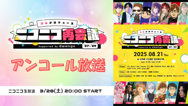 streaming 2026.03.28(土)20:00【ニコ生】【アンコール放送】ゴムプロデュース ニコニコ再会議’07~’09