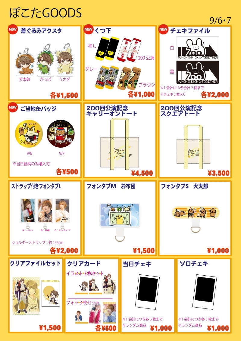 ぽこた『★9月6日、7日、ぽこたのくりねろサンド 札幌ライブ物販情報詳細★』