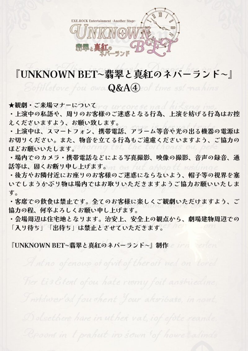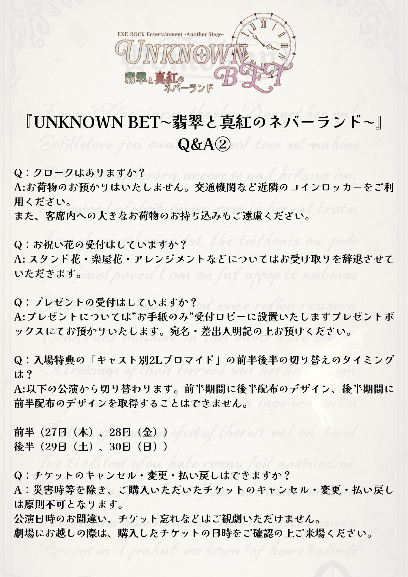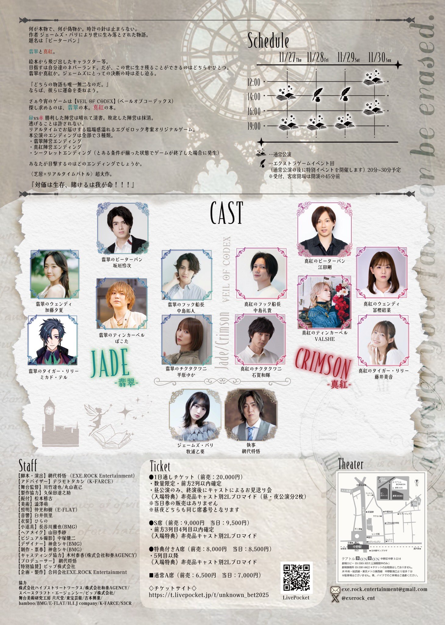 2025/11/27(木)-11/30(日)EXE.ROCK Entertainment ~Another stage~ 『UNKNOWN BET~翡翠と真紅のネバーランド~』
