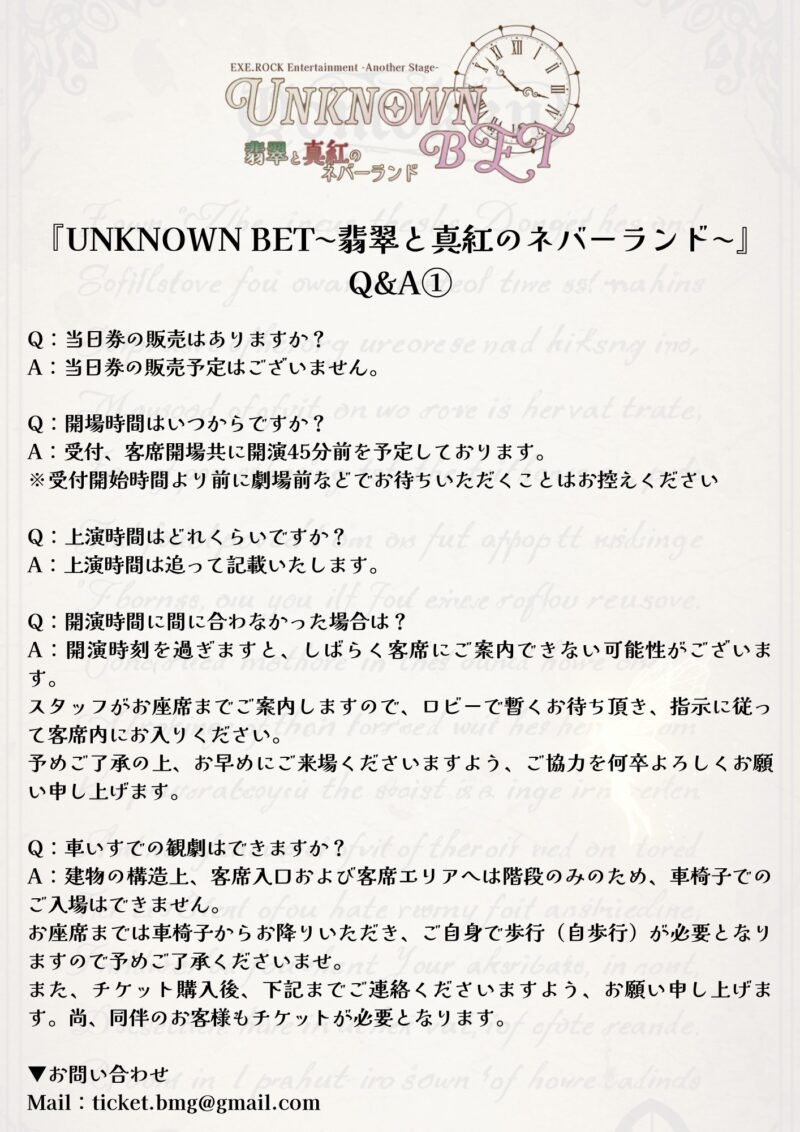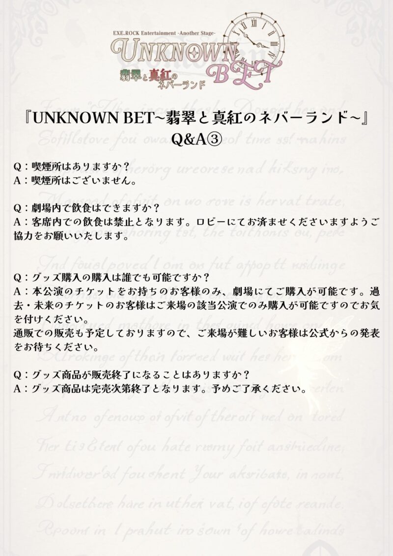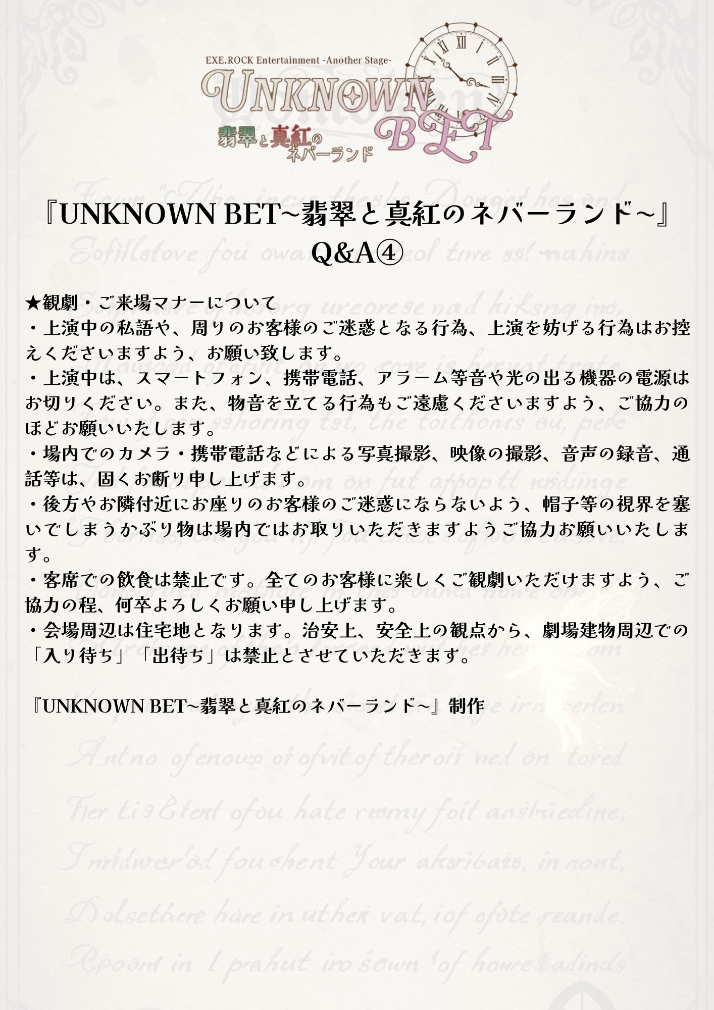 2025/11/27(木)-11/30(日)EXE.ROCK Entertainment ~Another stage~ 『UNKNOWN BET~翡翠と真紅のネバーランド~』